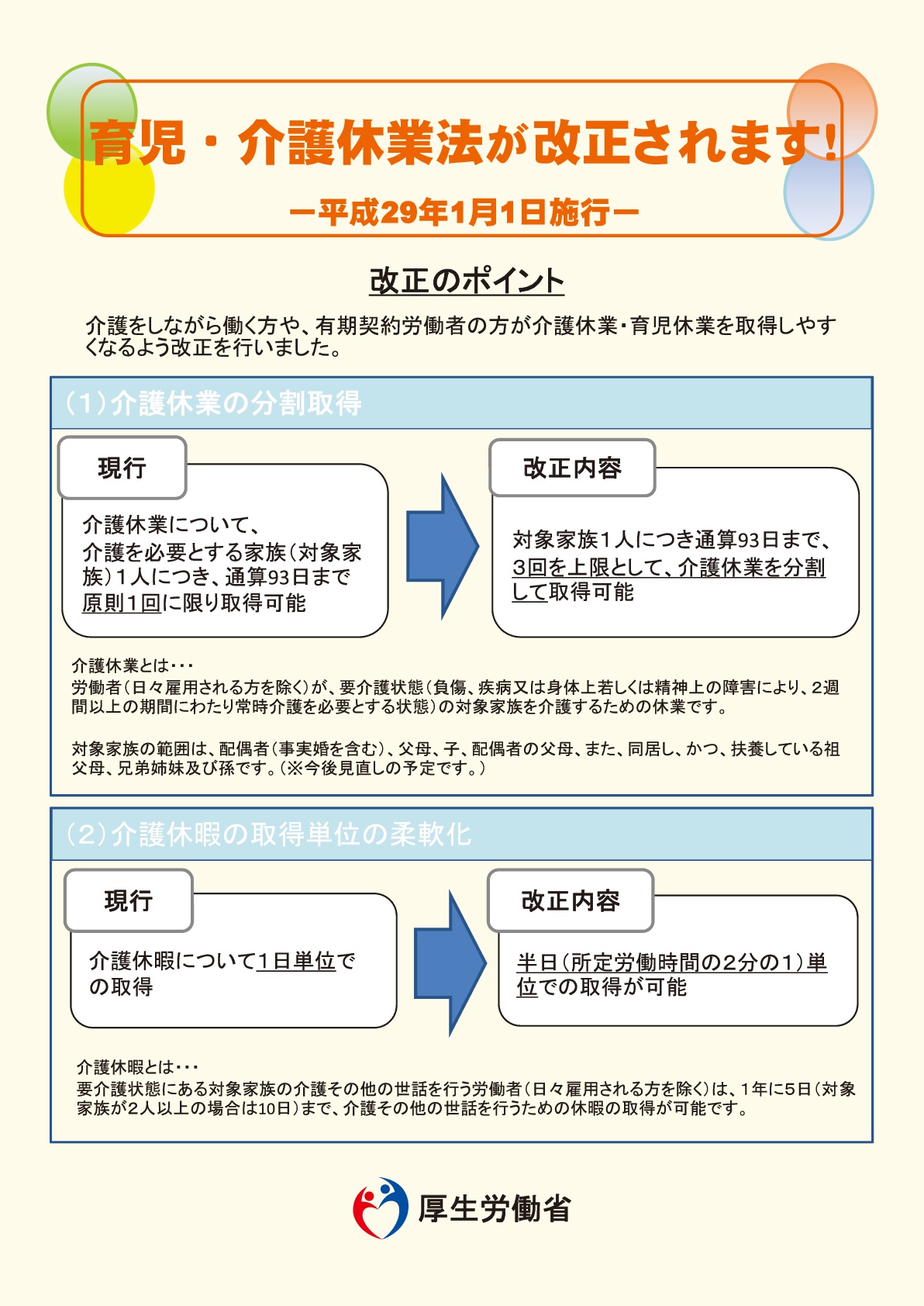 育児・介護休業法が改正されます。 ―平成29年1月1日施行―