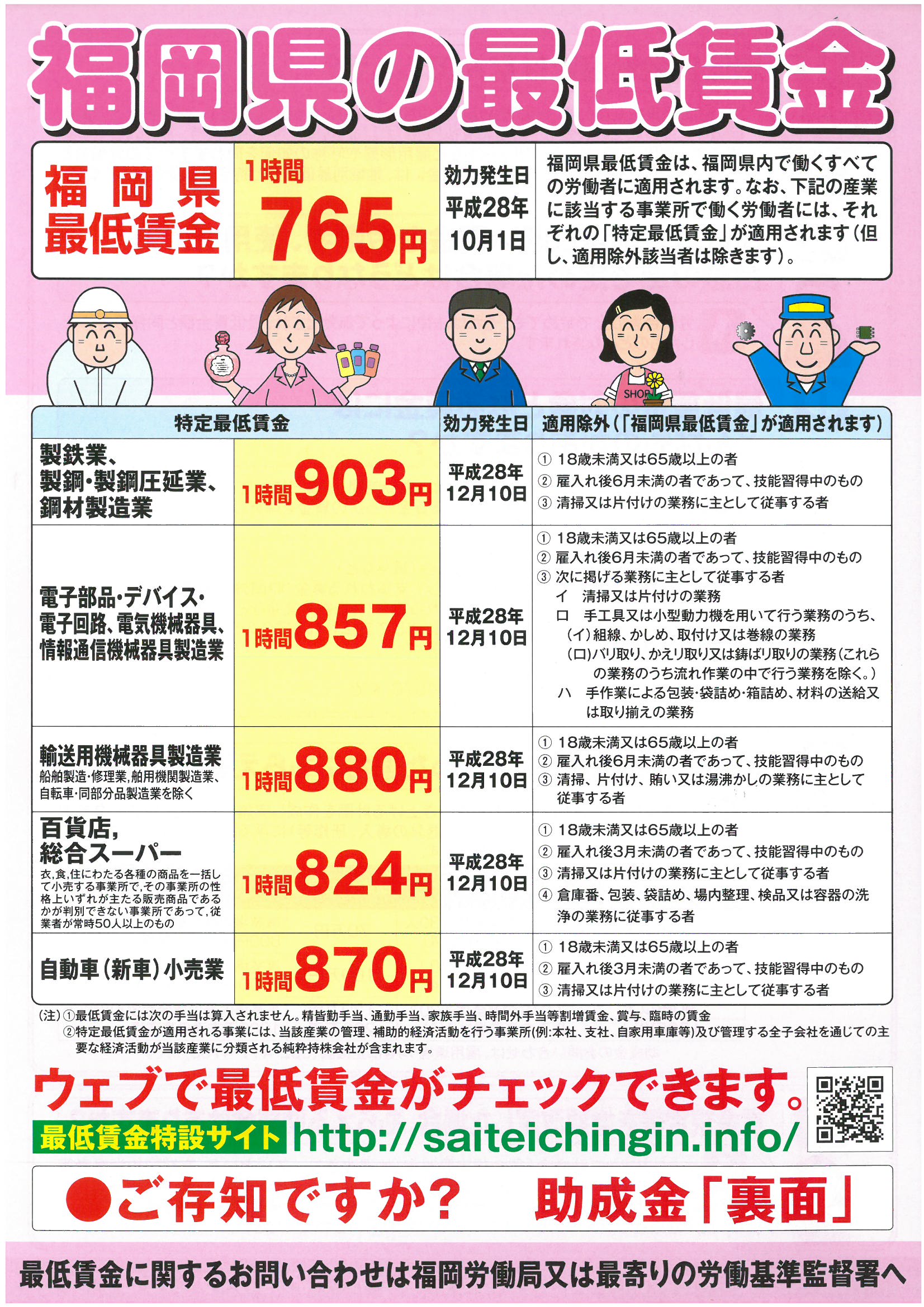 福岡労働局労働基準部監督課賃金室 TEL:092-411-4578 FAX:092-411-2633 ホームページアドレス http://fukuoka-roudoukyoku.jsite.mhlw.go.jp/