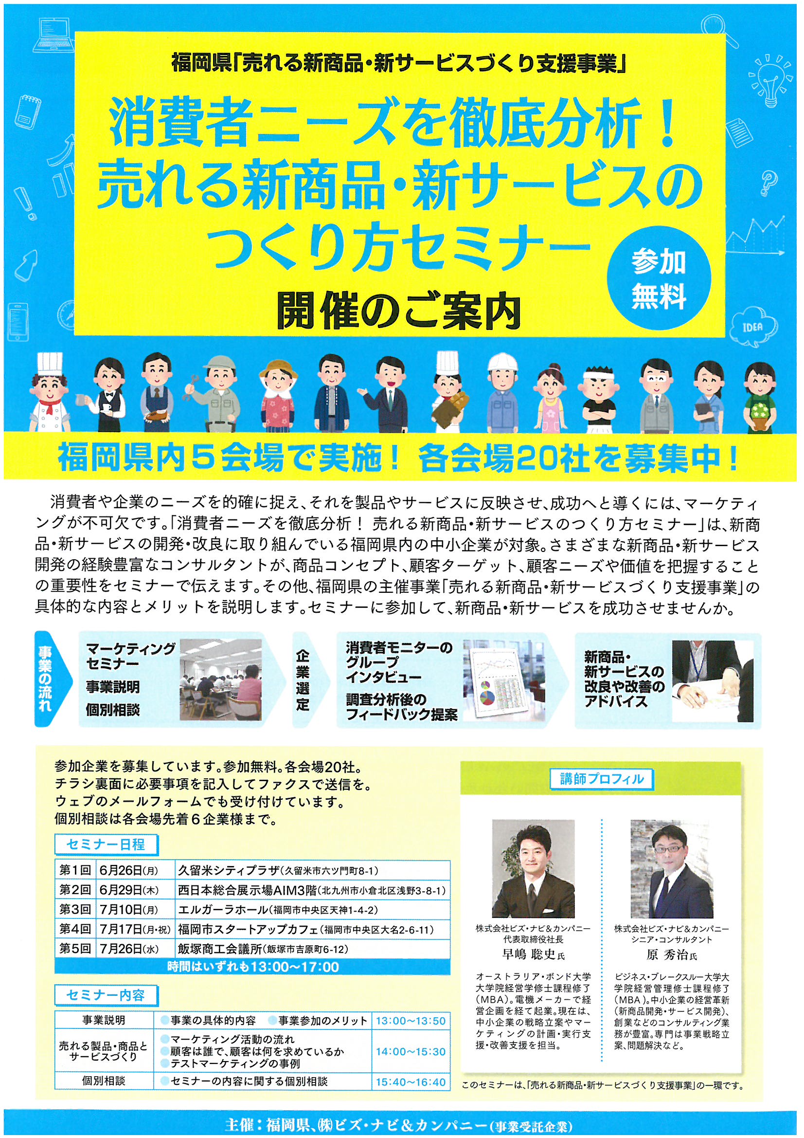 福岡県「売れる新商品・新サービスづくり支援事業」事務局 ((株)ビズ・ナビ&カンパニー) TEL 092-761-6130 FAX 092-761-6075