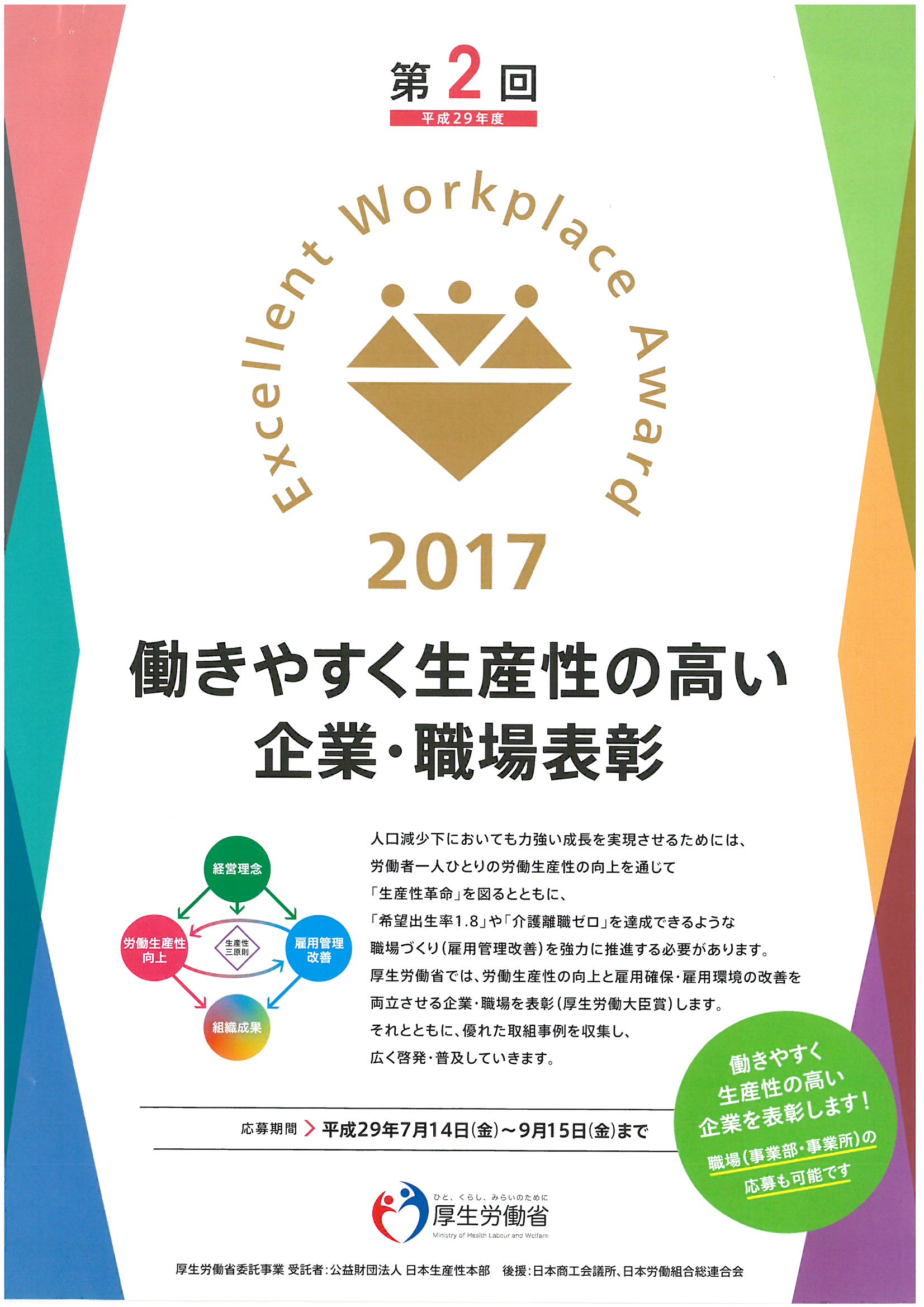 厚生労働省では、労働生産性の向上と雇用確保・雇用環境の改善を両立させる企業・職場を表彰(厚生労働大臣賞)します。