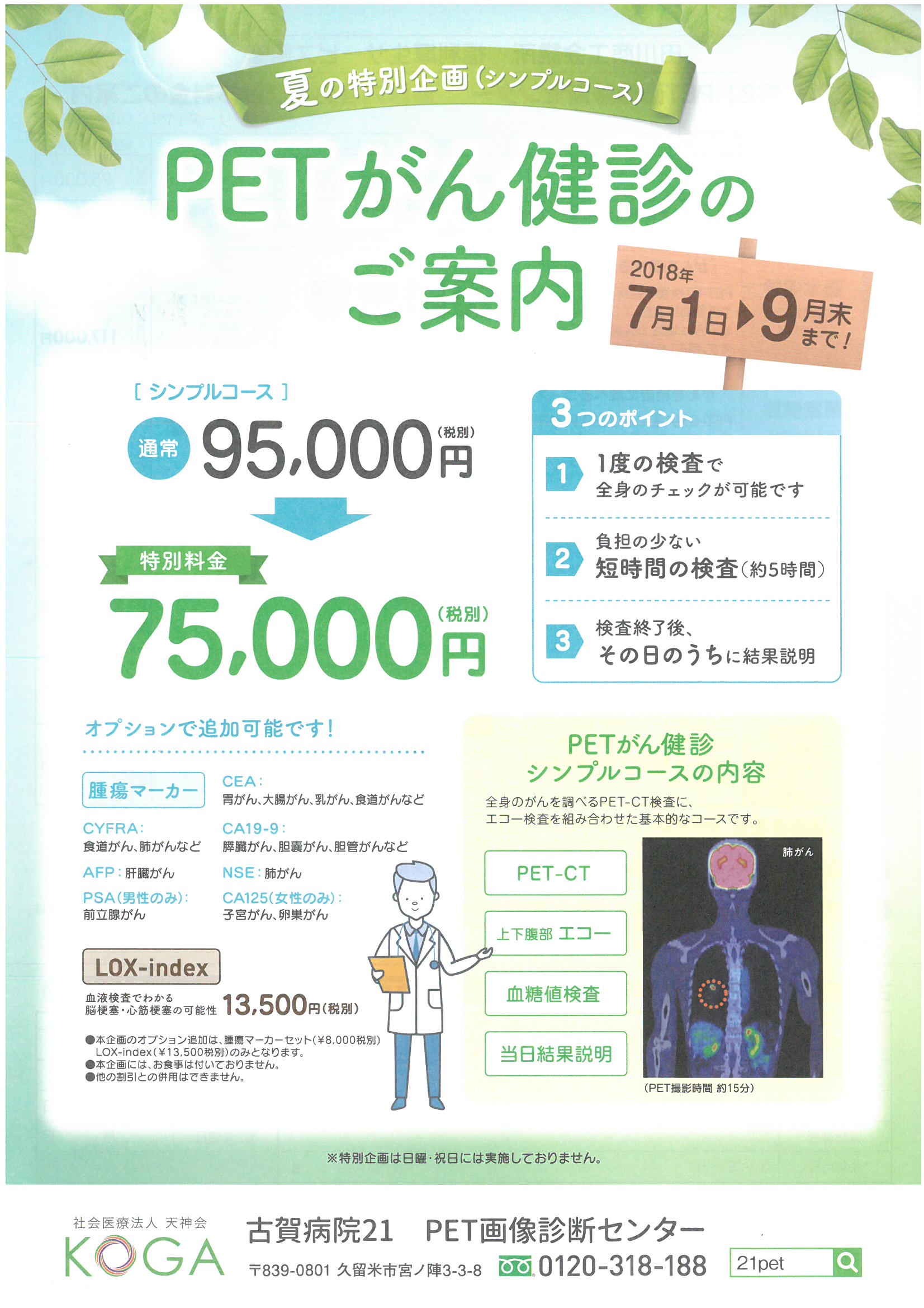 ●夏の特別企画(シンプルコース)PETがん健診のご案内チラシ・申込書ダウンロード(PDF)