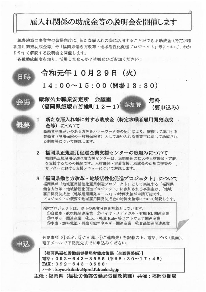 雇入れ関係の助成金等の説明会を開催します【耳より情報】