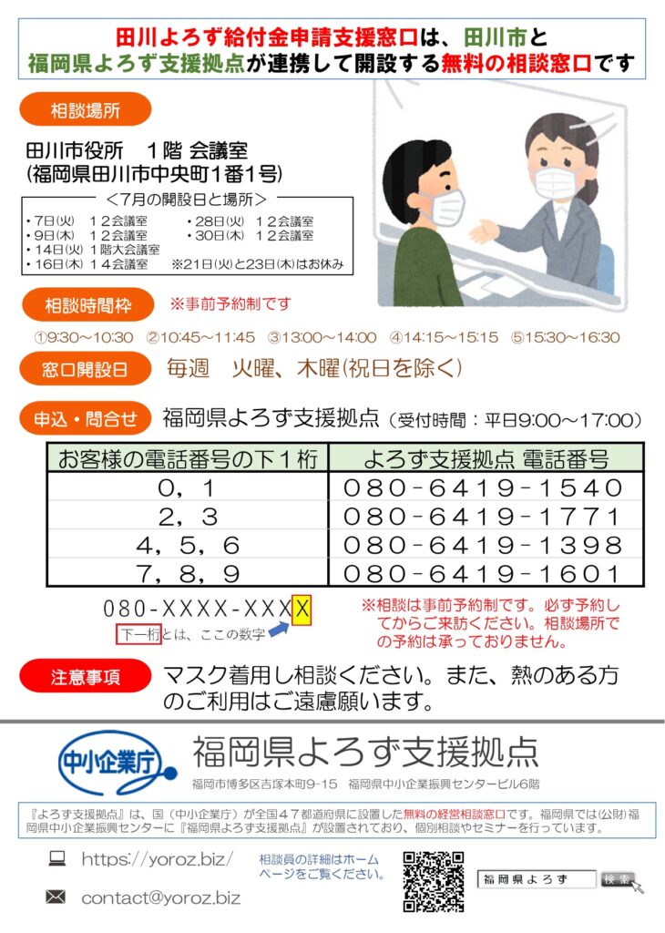 - 予約・問い合わせ 福岡県よろず支援拠点(受付時間:平日9時~17時)