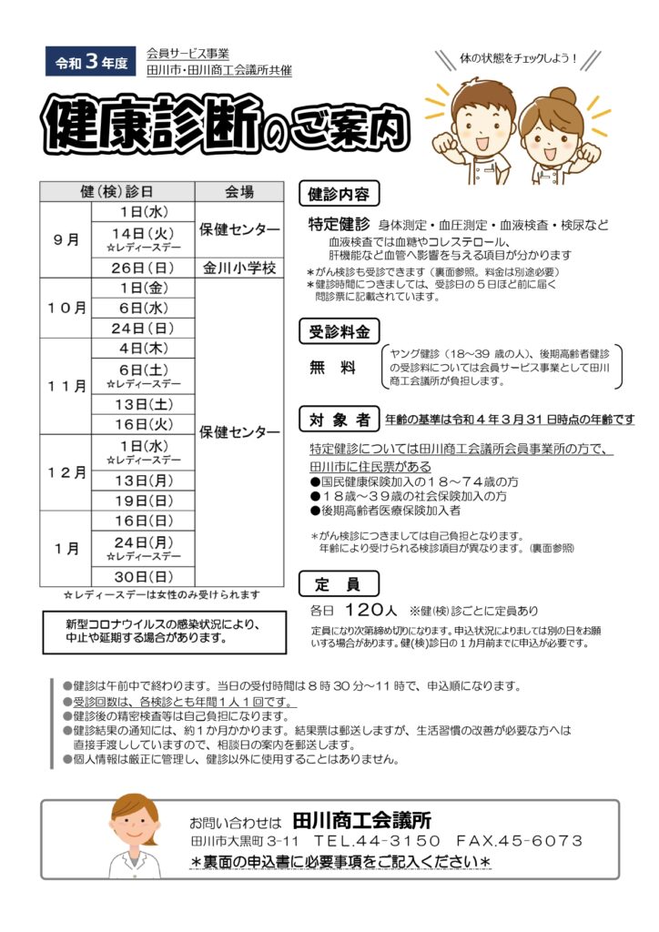 田川市と田川商工会議所の共催により、今年も健康診断を実施いたします。