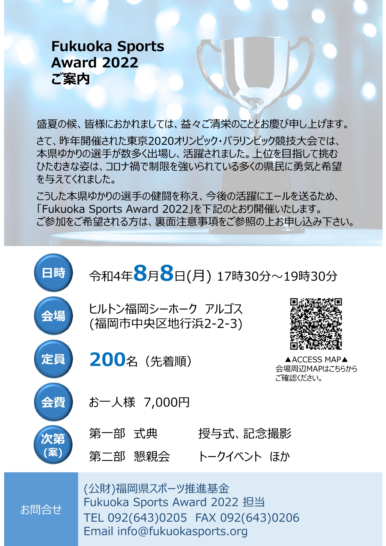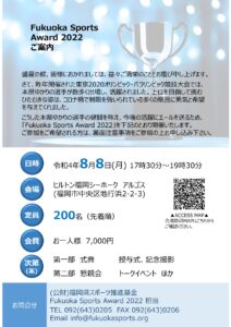【耳より情報】Fukuoka Sports Award 2022のご案内(福岡県スポーツ推進基金)