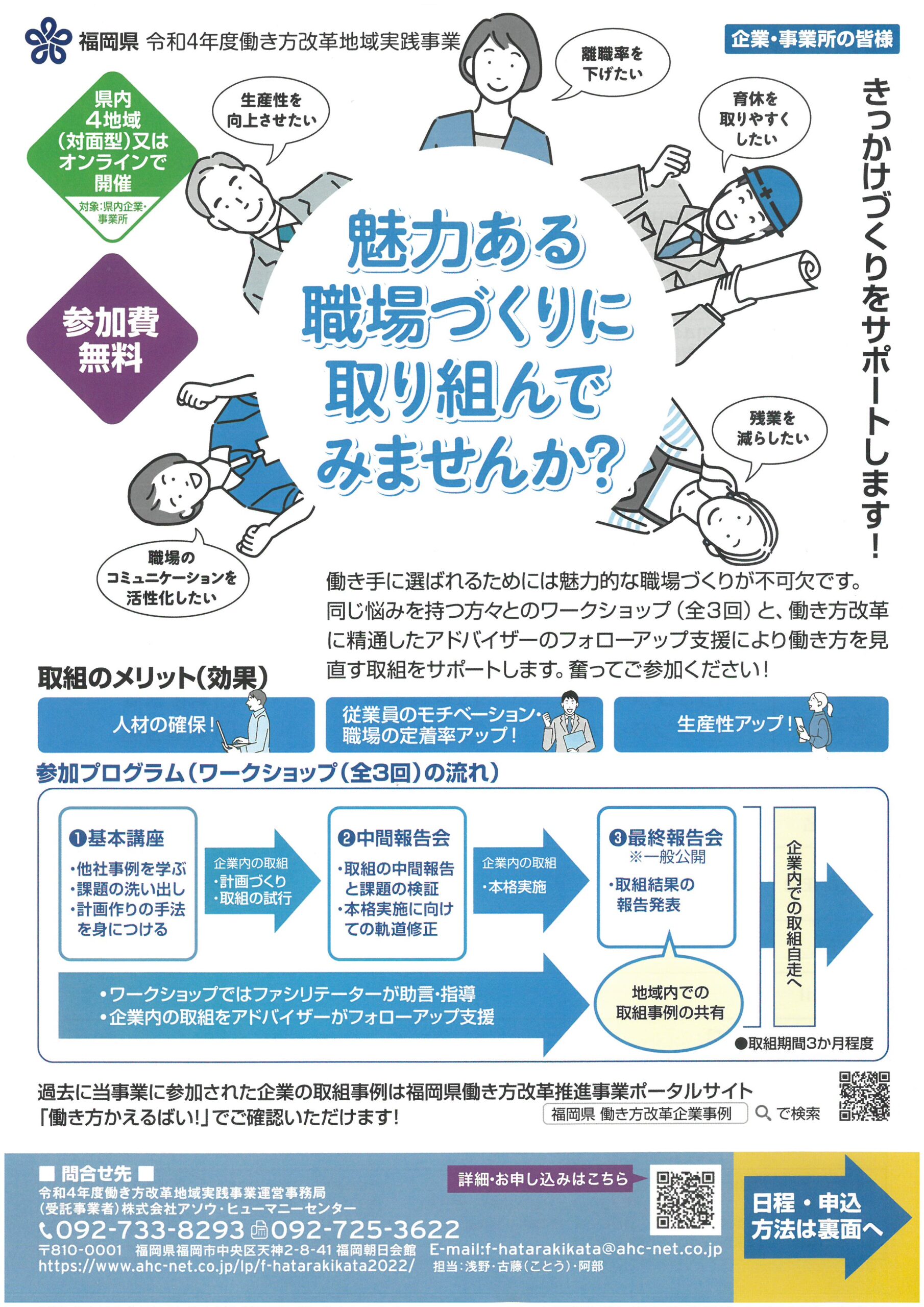 【福岡県】働き方改革地域実践事業への参加企業募集