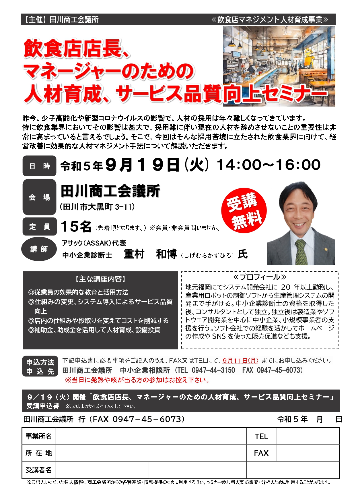 飲食店店長、マネージャーのための人材育成、サービス品質向上セミナー開催