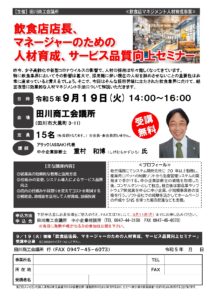 飲食店店長、マネージャーのための人材育成、サービス品質向上セミナー開催