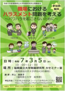 【地域情報】職場におけるハラスメント問題を考える(福岡県立大学付属研究所公開講座)