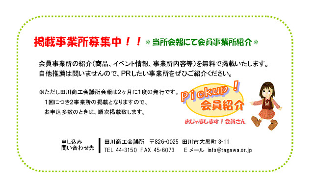 お申込は田川商工会議所まで[emoji:v-354] TEL/44-3150