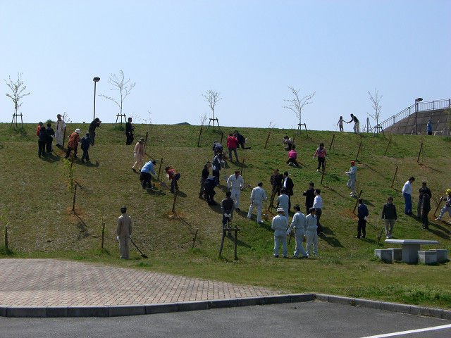 新聞等で見られた方も多いかと思いますが、先日、7日(火)に 『住民参加の美しいまちづくり協議会』によるモミジ植樹が行われました この『住民参加の美しいまちづくり協議会』は、2005年に発足 以後、田川中央総合スポーツセンター周辺をモミジの名所にしようと、 約7ヘクタールののり面に、5,000本のモミジを植える目標を設定し、 昨年までに約4,000本を植樹しました 今年で4年目を迎える今回の植樹会 ついに目標の計約5,000本を達成することができました これもご協力いただいた皆様のおかげです!本当にありがとうございました 田川のボタ山がモミジで彩られる日がやってくるー こうご期待あれ (ピ)