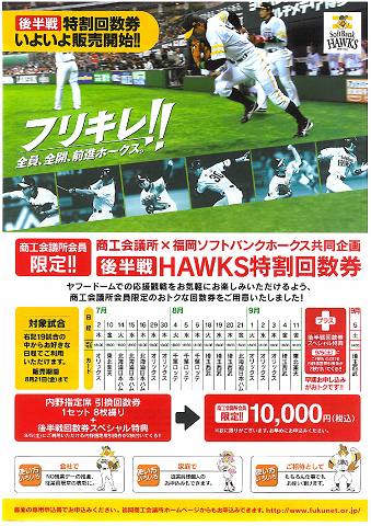 後半戦 HAWKS特割回数券販売のご案内です