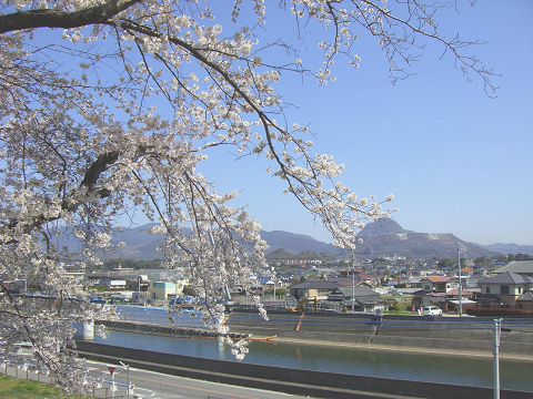 雲ひとつない青空で桜と香春岳がキレイでした。