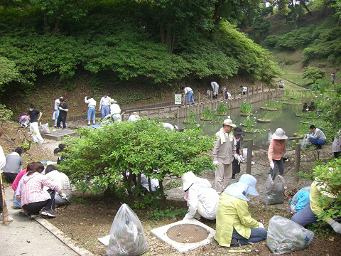 先日14日は定例の公園清掃、そして毎年恒例の花菖蒲鑑賞会(成道寺公園)が行われました。