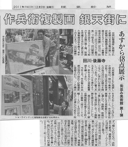 48枚のレプリカが田川後藤寺銀天街の18店舗のショーウィンドウに飾られています。