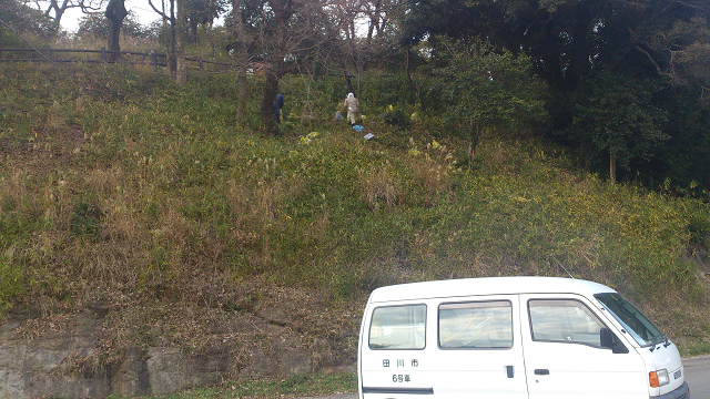 昨日は毎月定例の公園清掃を行いました 33名の方にお集まりいただき作業開始! 寒いだろうと思ってましたが!! 風もなくお日様が顔を出してくれてたお陰でほんのり暖かくて作業しやすいお天気でした こんな急斜面で草刈されてる方も もくもくと作業を進めてかなりきれいになりました しかし、しゃがみっぱなしの作業はつらい!! 足腰がいたたたた・・・(笑) 参加されたみなさんお疲れ様でしたっ (∵)