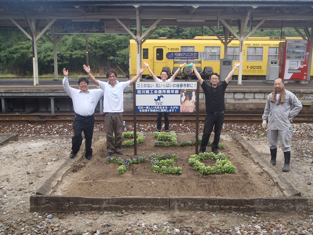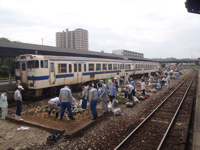 JR田川後藤寺駅構内の花植え替え作業を行いました!!