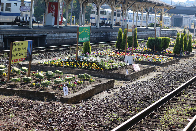 先日、花の植替えが終わったJR田川後藤寺駅構内の花壇(∩ˊᵕˋ∩)♪
