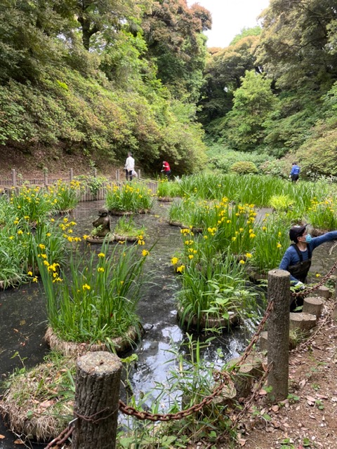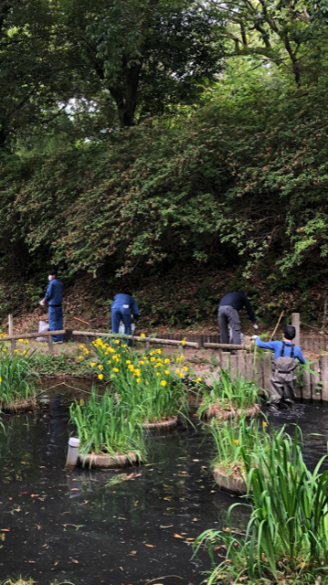 1時間程、落ち葉の回収、菖蒲ヶ池内の清掃も行いました。