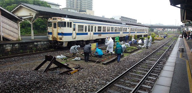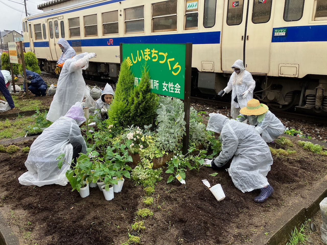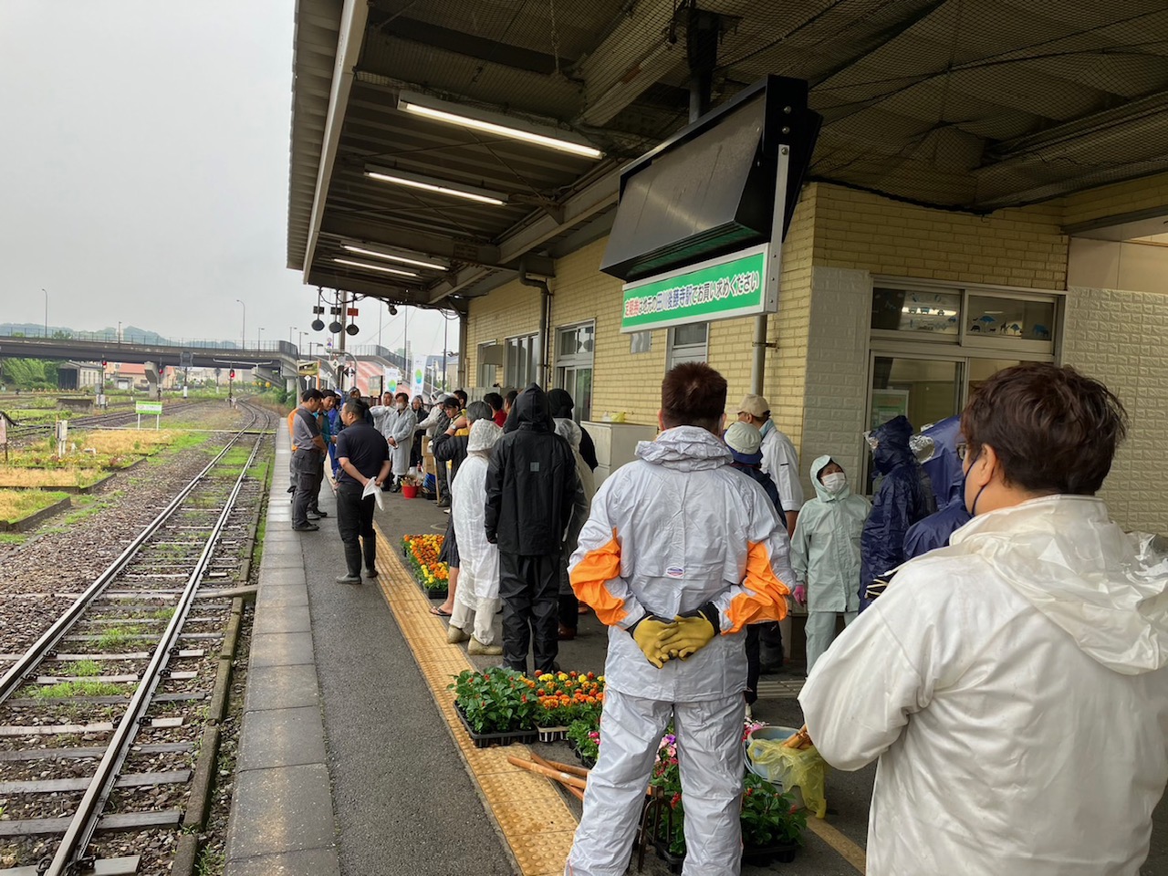 6日(火)JR田川後藤寺駅構内にある花壇の花植替え作業が行われました(*•̀ω•́ )ゝ