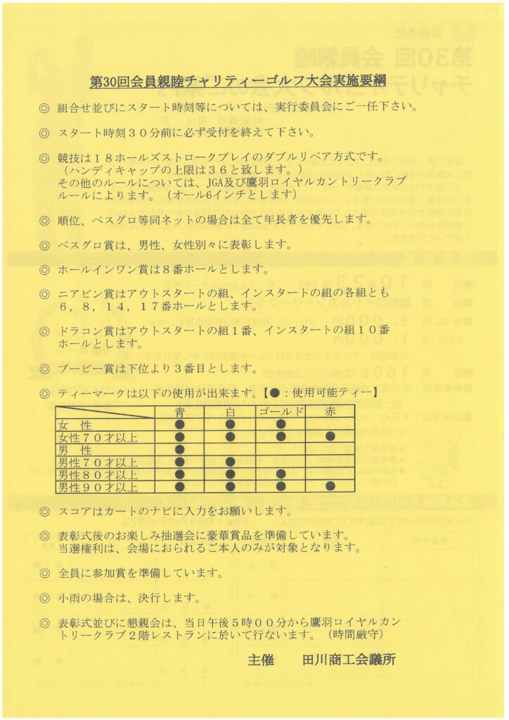 第30回 会員親睦チャリティゴルフ大会参加者募集中!!
