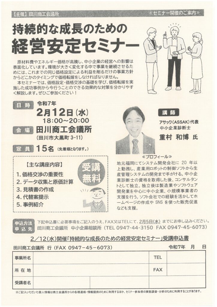 価格転嫁を少しでも、考えているなら受講してみてはいかがでしょうか?