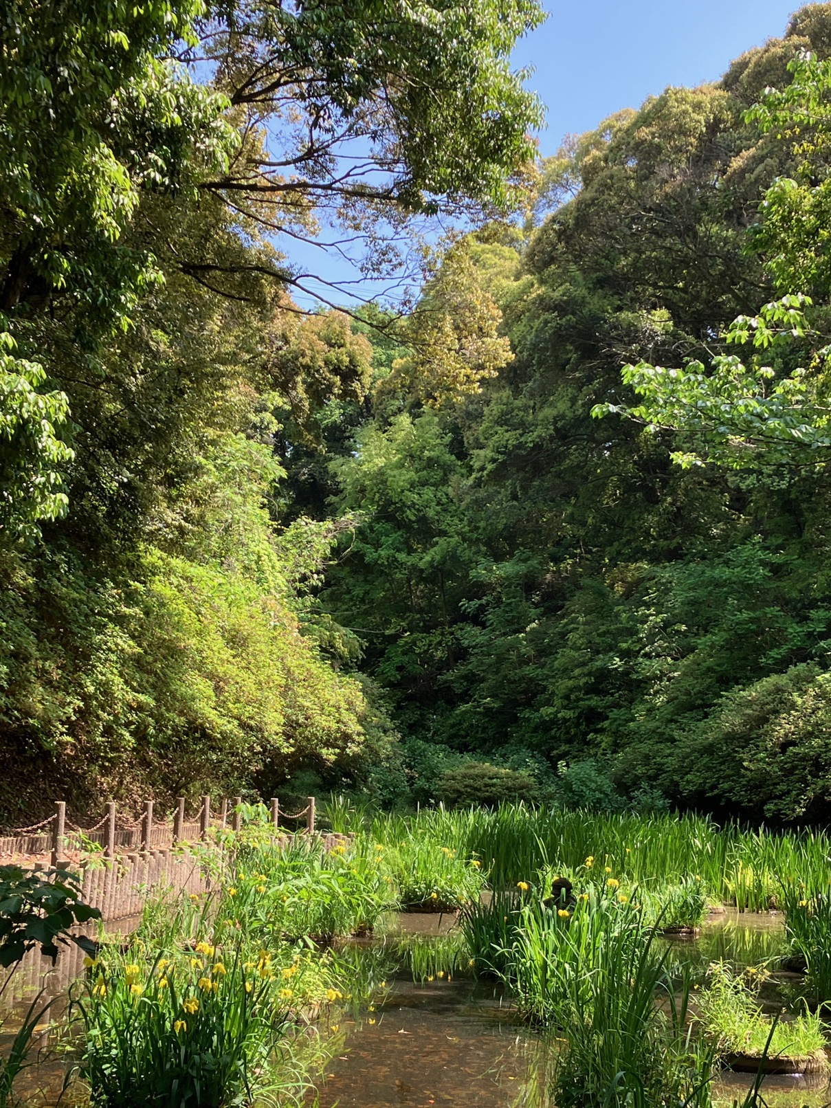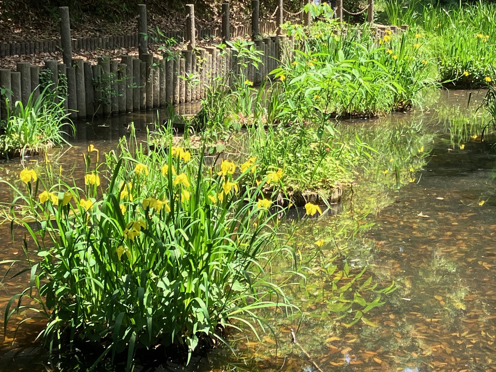 池を見ると、黄色く花が色づいていました ( **   )