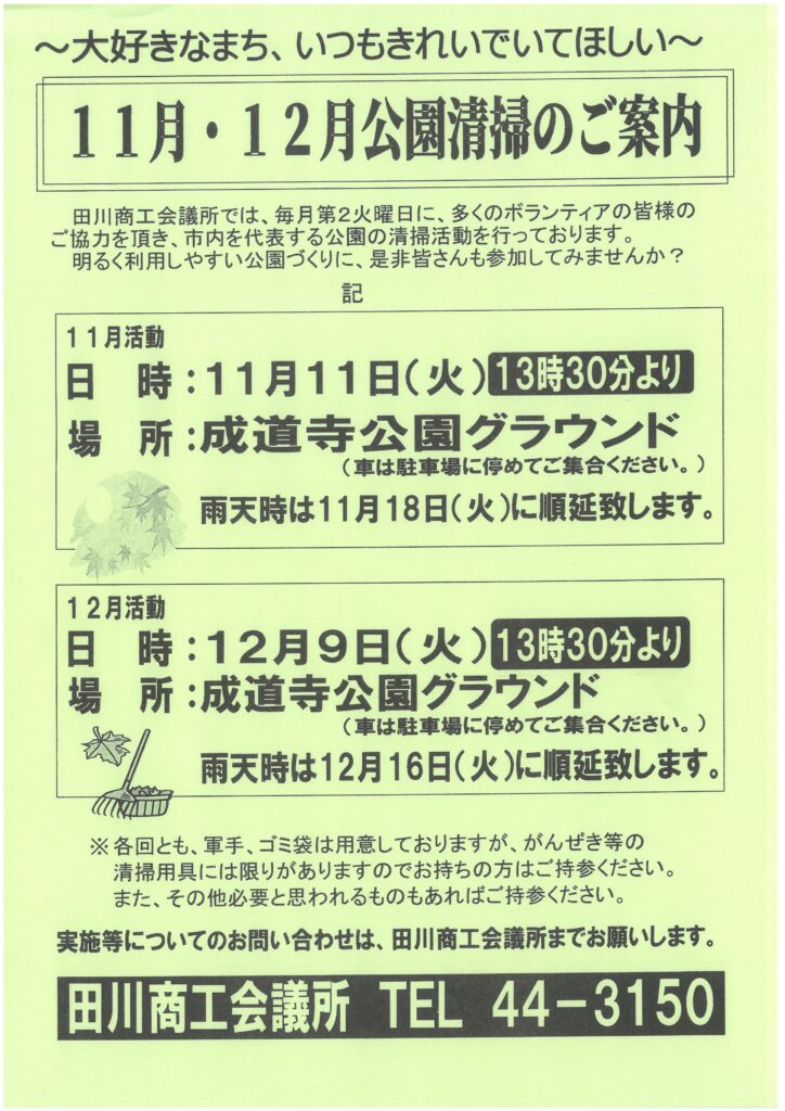 14日(火)先月に引き続ぎ、TAGAWAコールマイン・フェスティバルに向けて“石炭記念公園”にて、清掃活動が行われました。