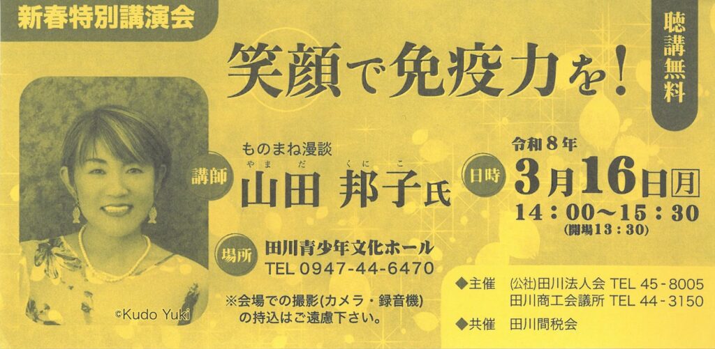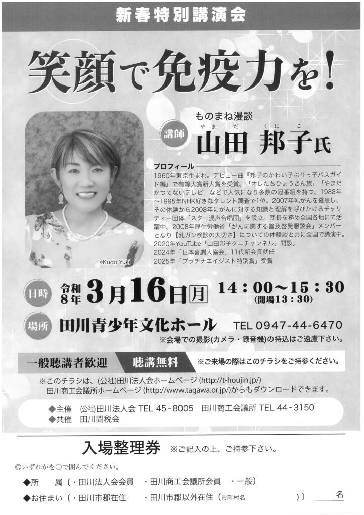今年の講師は、山田 邦子 氏をお招きして“ものまね漫談”をしていただきます✧*。(ˊᗜˋ*)✧*。